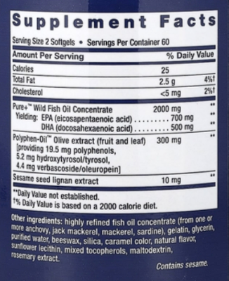 Описание состава Life Extension Super Omega-3 + Olive Extract: